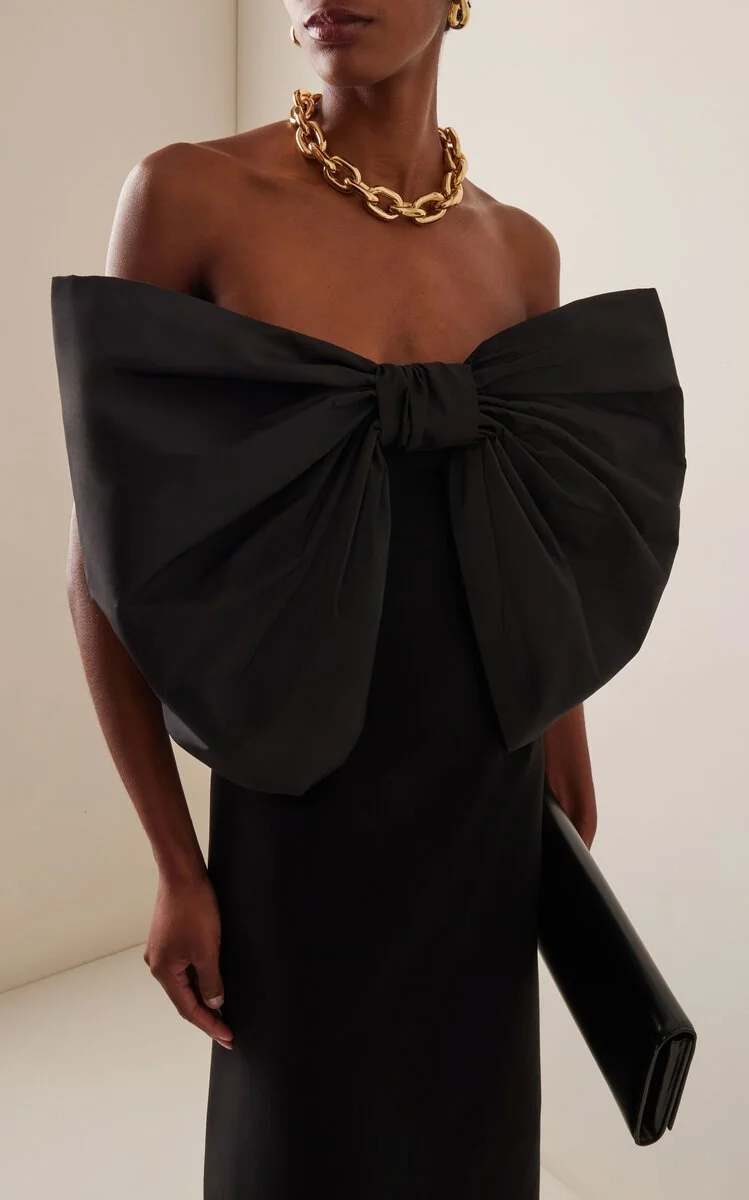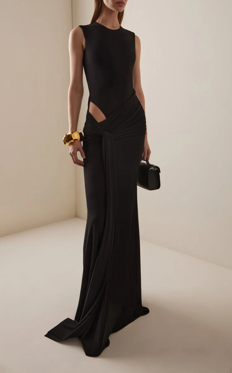 For women: modern black eveningwear - sleek, elegant, with room for metallic, neutral, or soft colour accents through jewellery, shoes, or a considered detail.